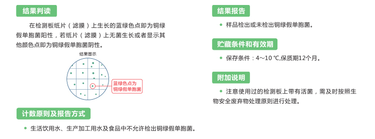 用途:適合于生活飲用水、生產(chǎn)加工用水及食品中銅綠假單胞菌的快速檢測(cè)。